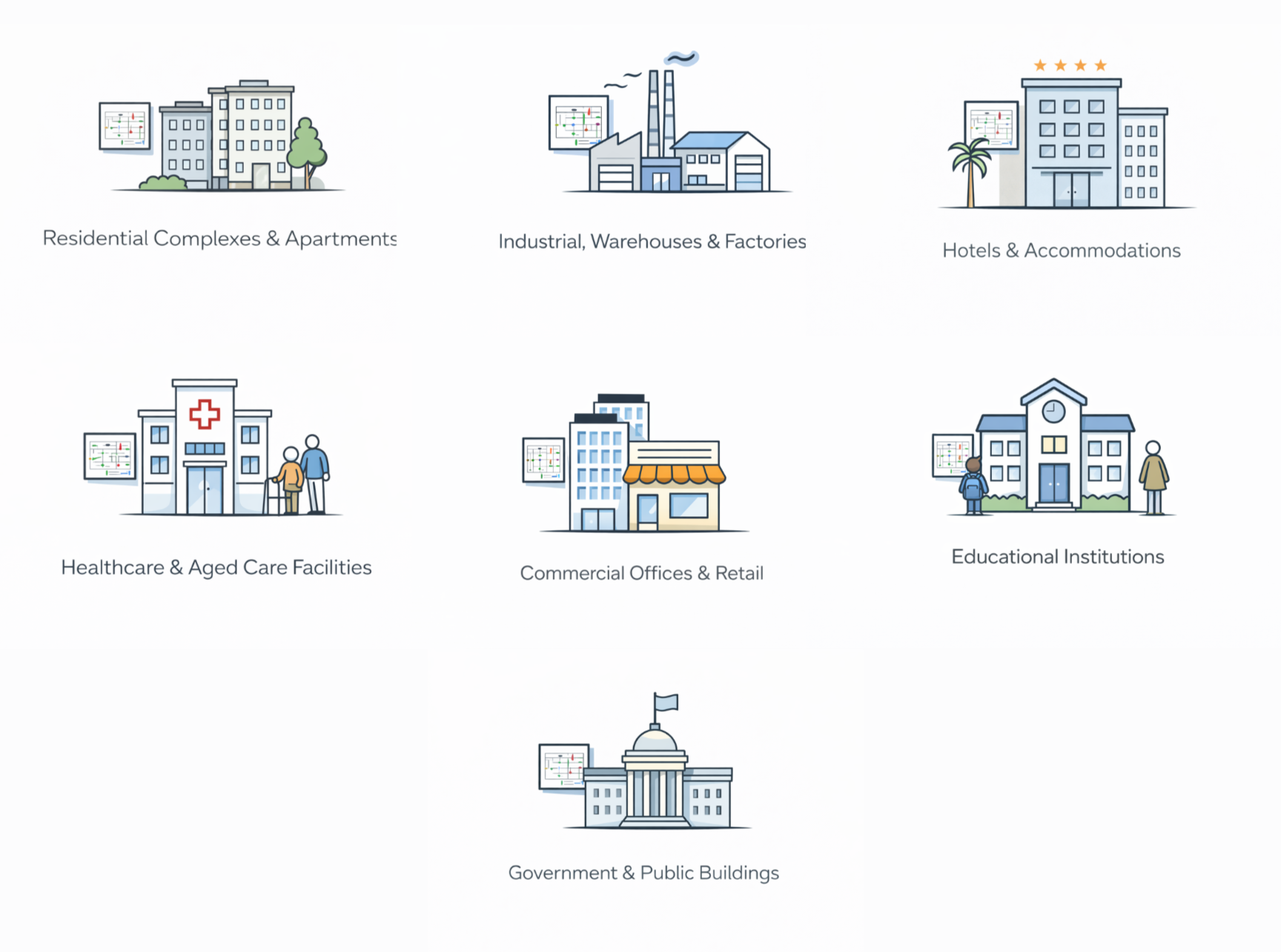We focus on delivering clear, accurate, and fully compliant evacuation diagrams that meet Australian Standards and support safe evacuation outcomes across a wide range of building types.